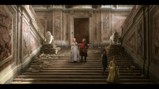 Working on the Caserta Palace staircase sequence, we created a full CG set build to replicate the environment filmed in during the first season. The Palace was no longer available to film in due to Covid so the environment had to be a 1 -1 replica including correct measurements to provide a seamless link between seasons 1 and 2.